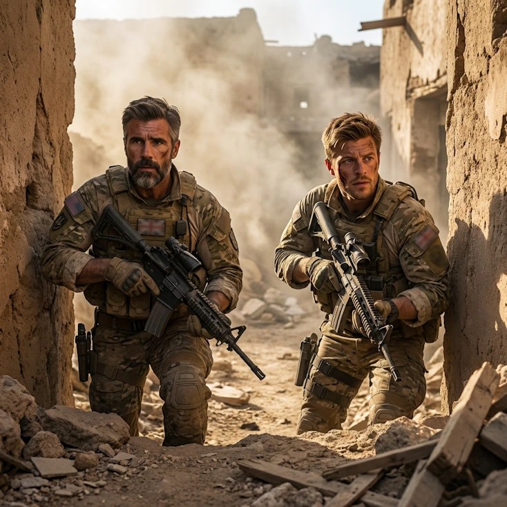 “Contact right!” Rhys didn’t think; he reacted. Training took over, muscles moving with a precision honed by repetition and necessity. He cleared the corner in three strides, rifle raised and eyes scanning for threats.
